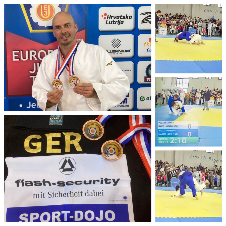 Am Wochenende starteten Francesco und Oliver beim European-Cup der Veteranen in Lettland. Unterstützt wurden sie von Steven, der sein Debüt als Coach erlebte. Francesco begann stark und sicherte sich in einem packenden Auftaktkampf gegen Estland den Sieg. Im Finale unterlag er dem Gegner aus Lettland. Somit erkämpfte sich Francesco bei seinem Comeback direkt Silber. Er nahm außerdem am anschließenden Bodenwettbewerb teil. Francesco konnte in diesem Turnier wichtige Erfahrungen sammeln, sich aber nicht gegen die starke Konkurrenz aus Lettland und Polen durchsetzen. Hier gewann er Bronze. Francescos Medaillen verhalfen auch seiner italienischen Nationalmannschaft zu Platz drei in der Nationenwertung. Oliver konnte bei diesem Turnier leider nicht an den Medaillenerfolg aus Hamburg anknüpfen und verlor seine Kämpfe gegen die starke Konkurrenz aus Lettland und Polen. Das Team nimmt viele Erfahrungen und Eindrücke mit in die Vorbereitung des European-Cups in Warschau.Wir drücken die Daumen und freuen uns darauf.